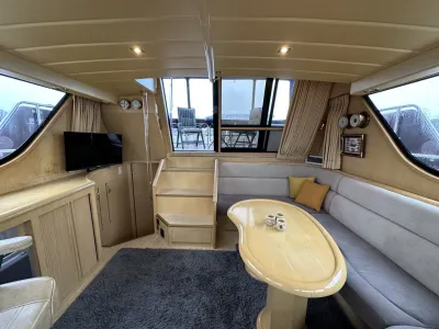 For those looking for a polyester motor yacht with a length of approximately 13 meters, dual engines, spacious accommodation, and extensive equipment, this President 425 offers a versatile option. The ship is registered, equipped with recent antifouling, and has a wide range of facilities for comfortable sailing and staying.