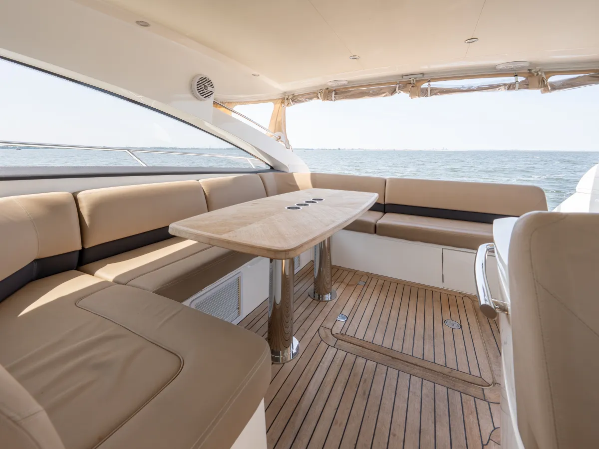 Le Princess V56 est un yacht à moteur sportif et élégant de 2011, construit par le chantier renommé Princess Yachts. Ce modèle combine vitesse, confort et fonctionnalité, et est conçu pour des excursions courtes ainsi que pour des séjours prolongés à bord. Avec une longueur de 17,45 mètres et une largeur de 4,47 mètres, ce yacht offre un intérieur spacieux et une disposition bien pensée, adapté à la navigation de plaisance sur les eaux intérieures et les lacs. Le Princess est un navire rapide qui a séjourné en eau douce et a été entreposé hors de l'eau en hiver. Doté de vastes espaces et d'une installation audio de haute qualité, il est idéal pour des excursions d'une journée ainsi que pour des séjours prolongés à bord.
