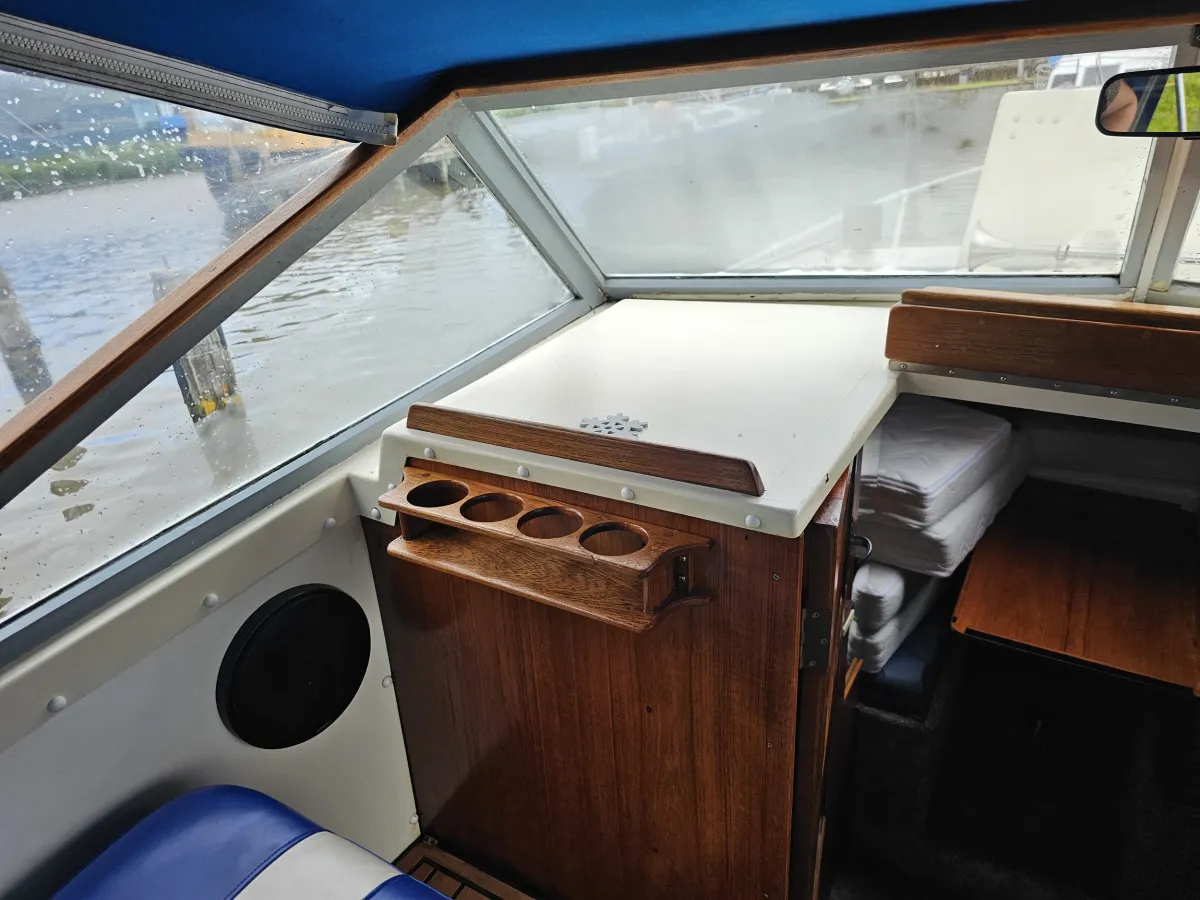 De Dorrif 609, gebouwd in 1986 door Nautikstraße, is een goed onderhouden polyester motorboot met een lengte van 609 cm en een breedte van 250 cm. Met een diepgang van 88 cm en een doorvaarthoogte van 235 cm is deze V-bodem boot ideaal voor binnenwateren, meren, plassen en rivieren. De boot biedt slaapplaatsen voor vier personen (2 vast, 2 extra) met een stahoogte van 175 cm binnen. Uitgerust met een Volvo Penta AQ 151 B motor van 150 pk, haalt de boot een topsnelheid van 53 km/u. De motor heeft 2300 draaiuren en verbruikt 8 liter benzine per uur. Aan boord bevinden zich diverse voorzieningen zoals een eethoek, koelkast, kooktoestel, stromend water, en een handmatig toilet dat direct op open water loost. Elektronisch is de boot uitgerust met twee accu's, walstroom, een acculader, en meetinstrumenten zoals een dieptemeter en marifoon. De buitenuitrusting omvat onder andere twee ankers, een kuiptent, dekzeil, zwemtrap en zwemplatform. De boot is geregistreerd bij de RDW. Recent onderhoud is uitgevoerd in 2024, inclusief een antifouling behandeling. Door de heckdrive is de boot zeer wendbaar en biedt hij veel vaarplezier.
